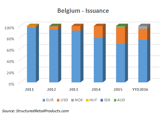 Denominations in foreign currencies (especially US dollars and Norwegian krone), (partial) capital protection, and products linked to managed funds continue to be important themes in the Belgian structured products market.