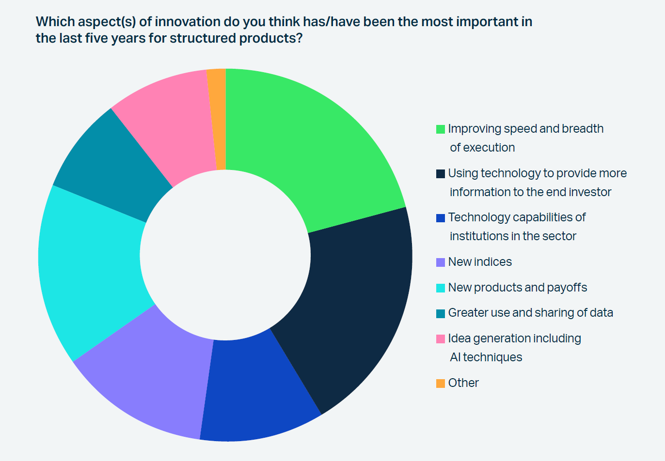 The 34.5% of respondents highlighting new indices as important innovations reflect the recognition, particularly in sections of the market, that the choice of underlying drives differentiation.