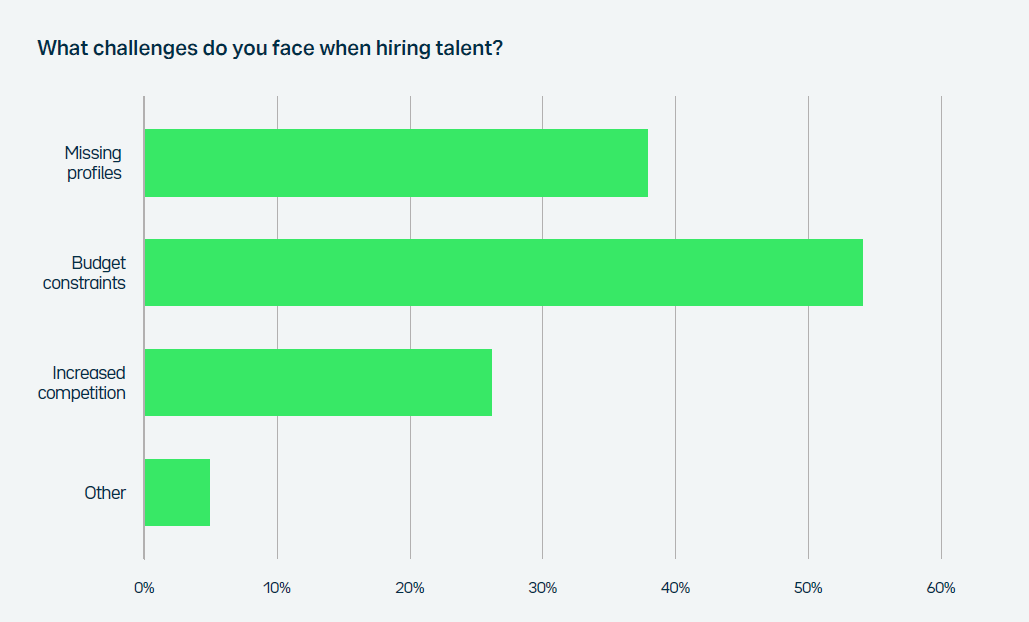 On hiring challenges, over half of respondents (54.2%) highlighted budgetary constraints, while a surprisingly high 38% cited missing applicant profiles and 26.3% noted increased competition for talent. Some mentioned structured products, "might be boring for talented individuals" and noted a "lack of interest" in the sector.