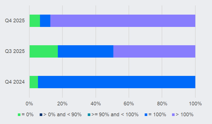 The number of issuer groups active in the quarter was five (Q3 2025: six; Q4 2024: six).