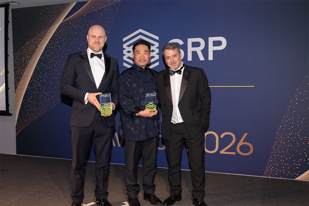Joe Simpson (left) and Sean Lam of Walker Crips at the SRP Europe 2026 Awards ceremony in London on 17 March. Far right Pablo Conde of SRP.